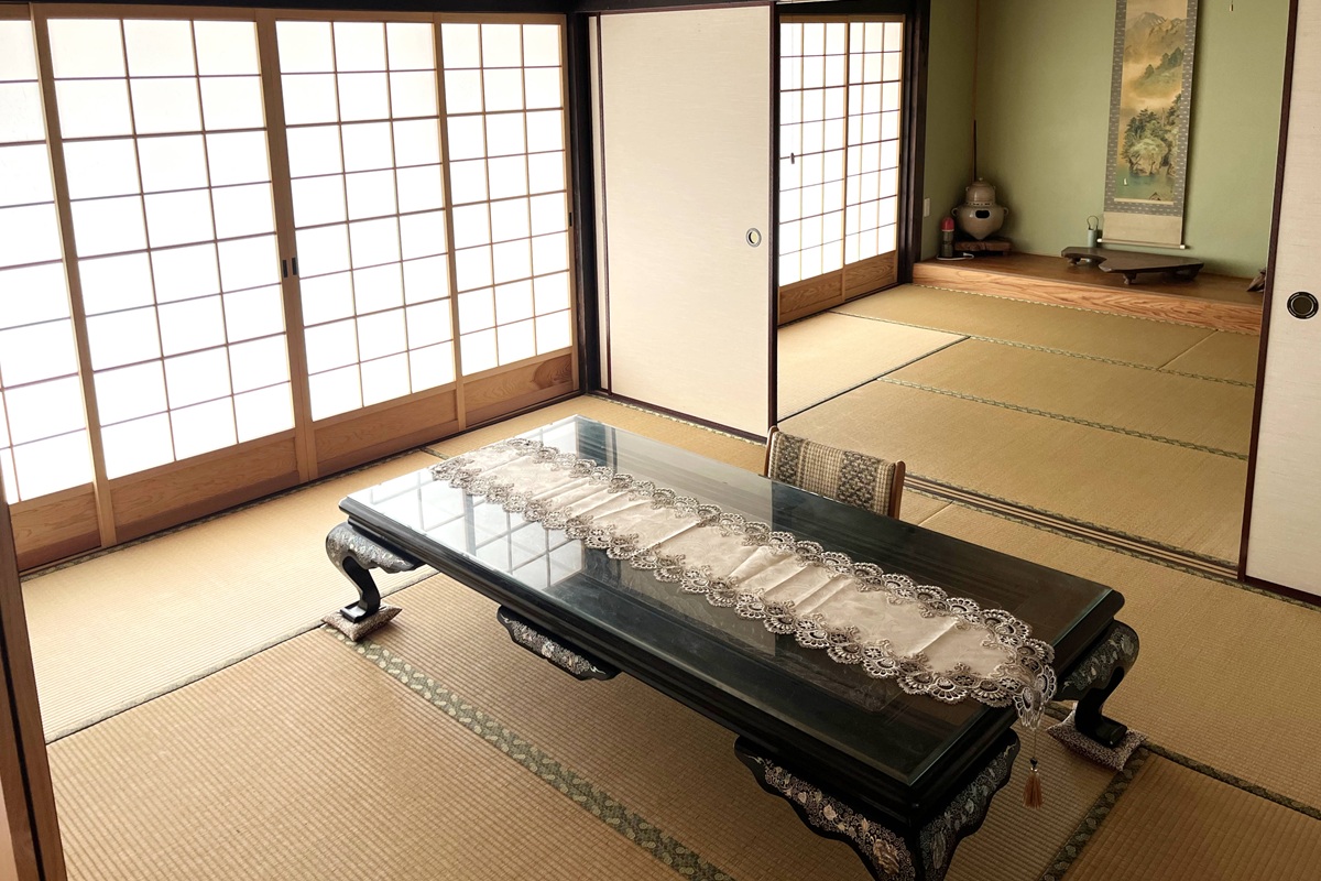 The traditional ryoukan hotel dates back well over 100 years as an historic family mansion equipped with its own tea house. The hotel suite has 5 bedrooms with private bathroom, kitchen, living room and dining room.